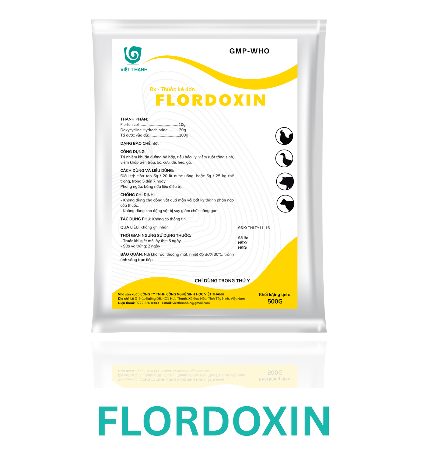 Điều trị: Hòa tan 5g / 20 lít nước uống, hoặc 5g / 25 kg thể trọng, trong 5 đến 7 ngày