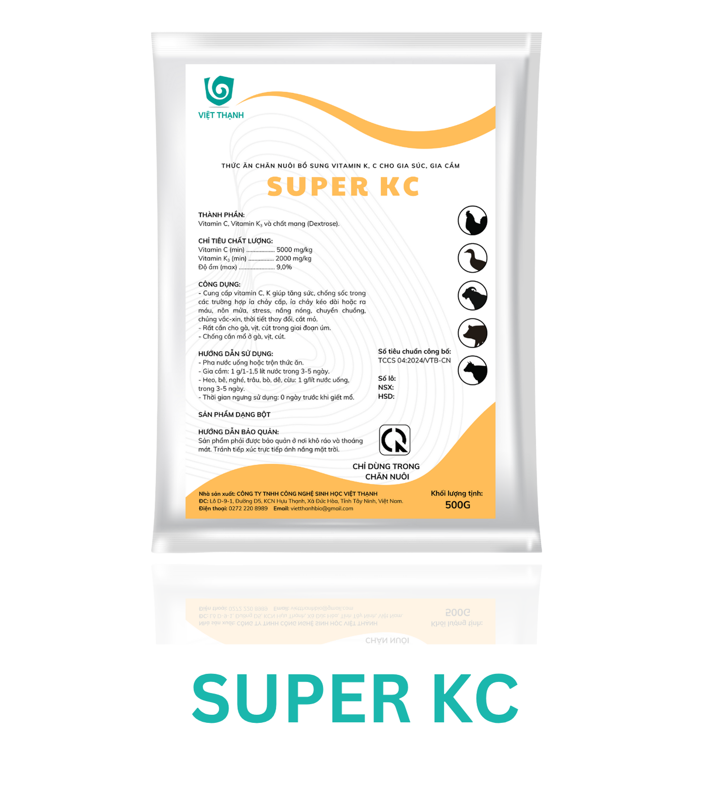 – Cung cấp vitamin C, K giúp tăng sức, chống sốc trong các trường hợp ỉa chảy cấp, ỉa chảy kéo dài hoặc ra máu, nôn mửa, stress, nắng nóng, chuyển chuồng, chủng vắc-xin, thời tiết thay đổi, cắt mỏ.
