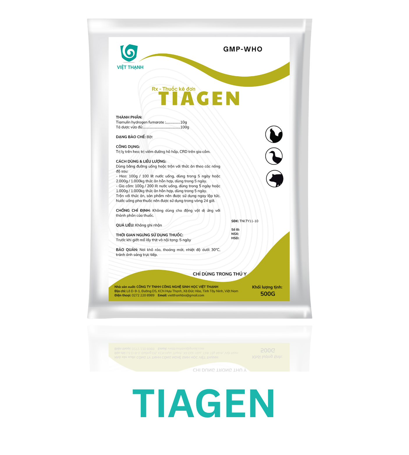 Trộn với thức ăn, sản phẩm nên được sử dụng ngay lập tức. Nước uống pha thuốc nên được sử dụng trong vòng 24 giờ.